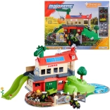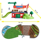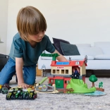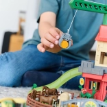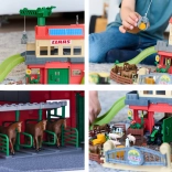 Ustvarjajte in igrajte se na dveh ravneh: spodaj shranjujte vozila, zgoraj živali in seno. Rampe in vrata povečujejo raznolikost igre ter spodbujajo domišljijo.