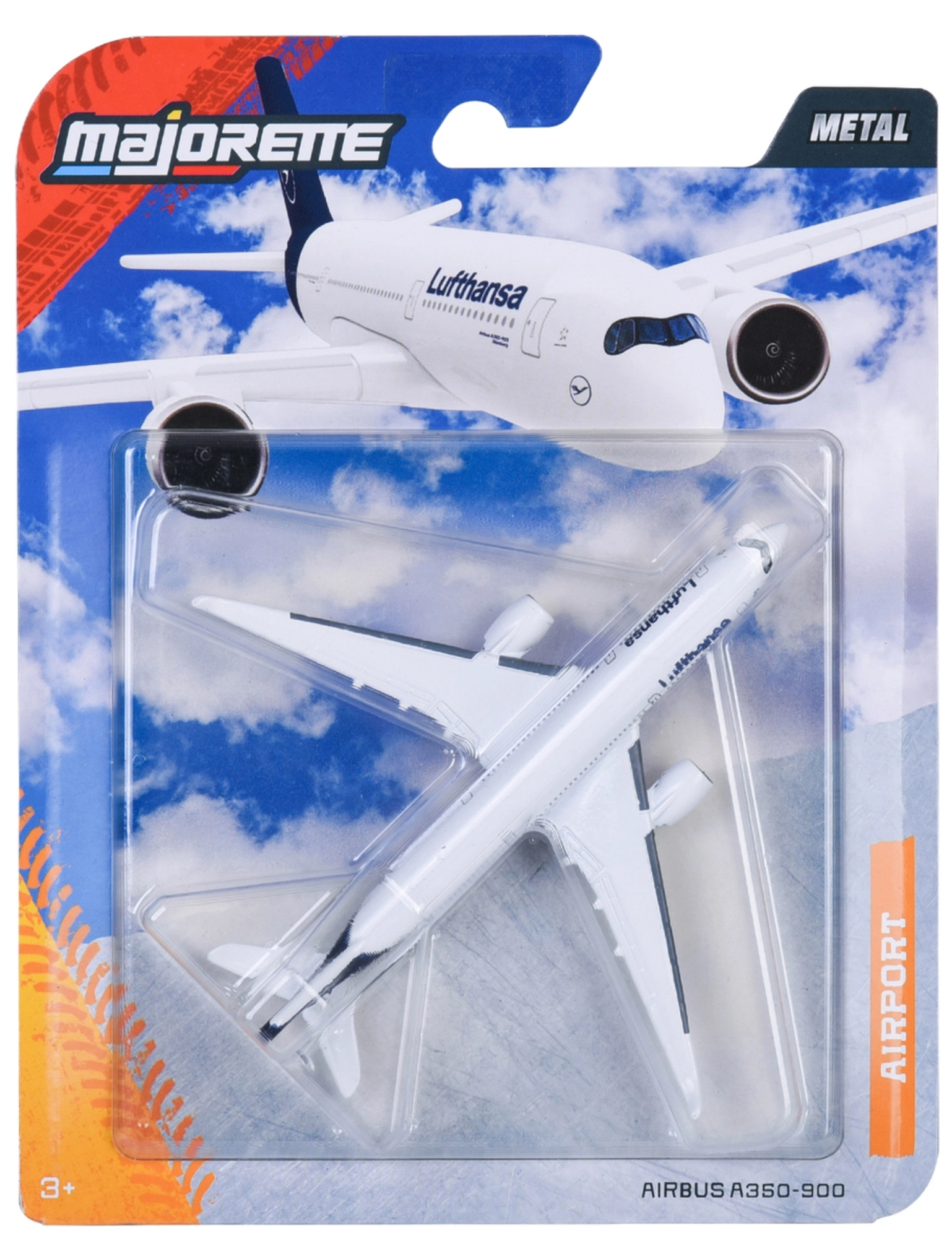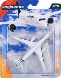 Odkrijte podrobno izdelan model letala Airbus A350-900 v barvah Lufthansa znamke Majorette. Kovinski model dolžine 10 cm ponuja realističen videz, kakovosten material in odlično doživetje za male ljubitelje letalstva. Idealno za otroke od 3 let in za vse, ki želijo razširiti svojo zbirko letaliških vozil.