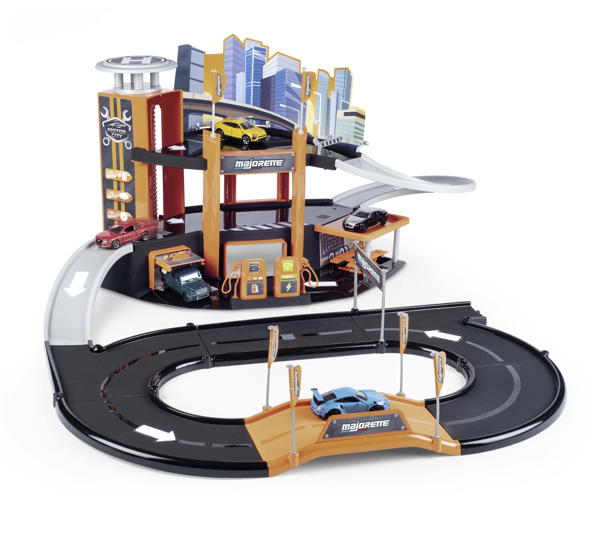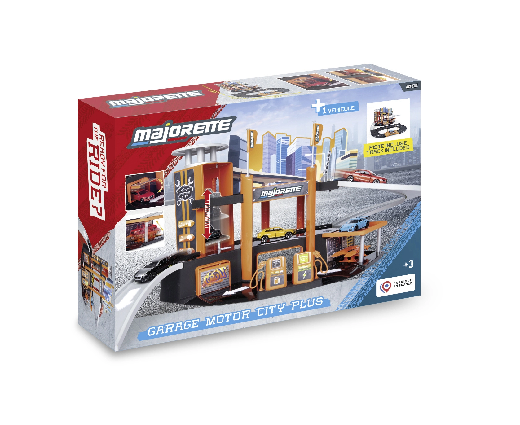 Odkrijte maksimalno zabavo z garažnim setom Motor City Plus znamke MAJORETTE – 3-nadstropno parkirišče z dolgim spustom, zanko, dvigalom, servisom in bencinsko črpalko z možnostjo »polnjenja« tudi za električna vozila. Priloženo je tudi mestno vozilo za takojšnjo igro.