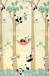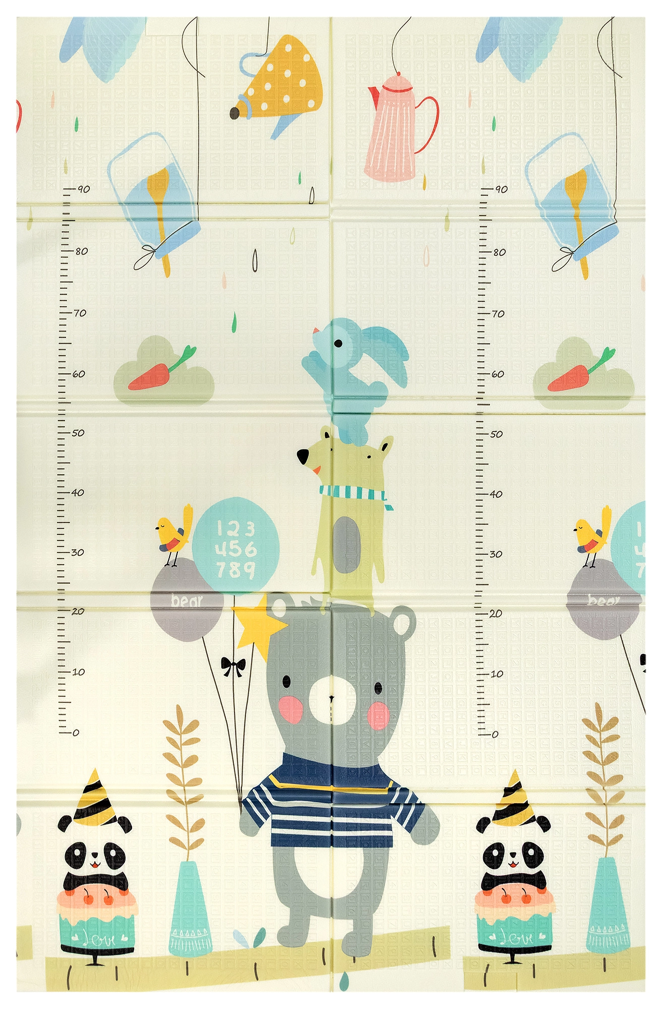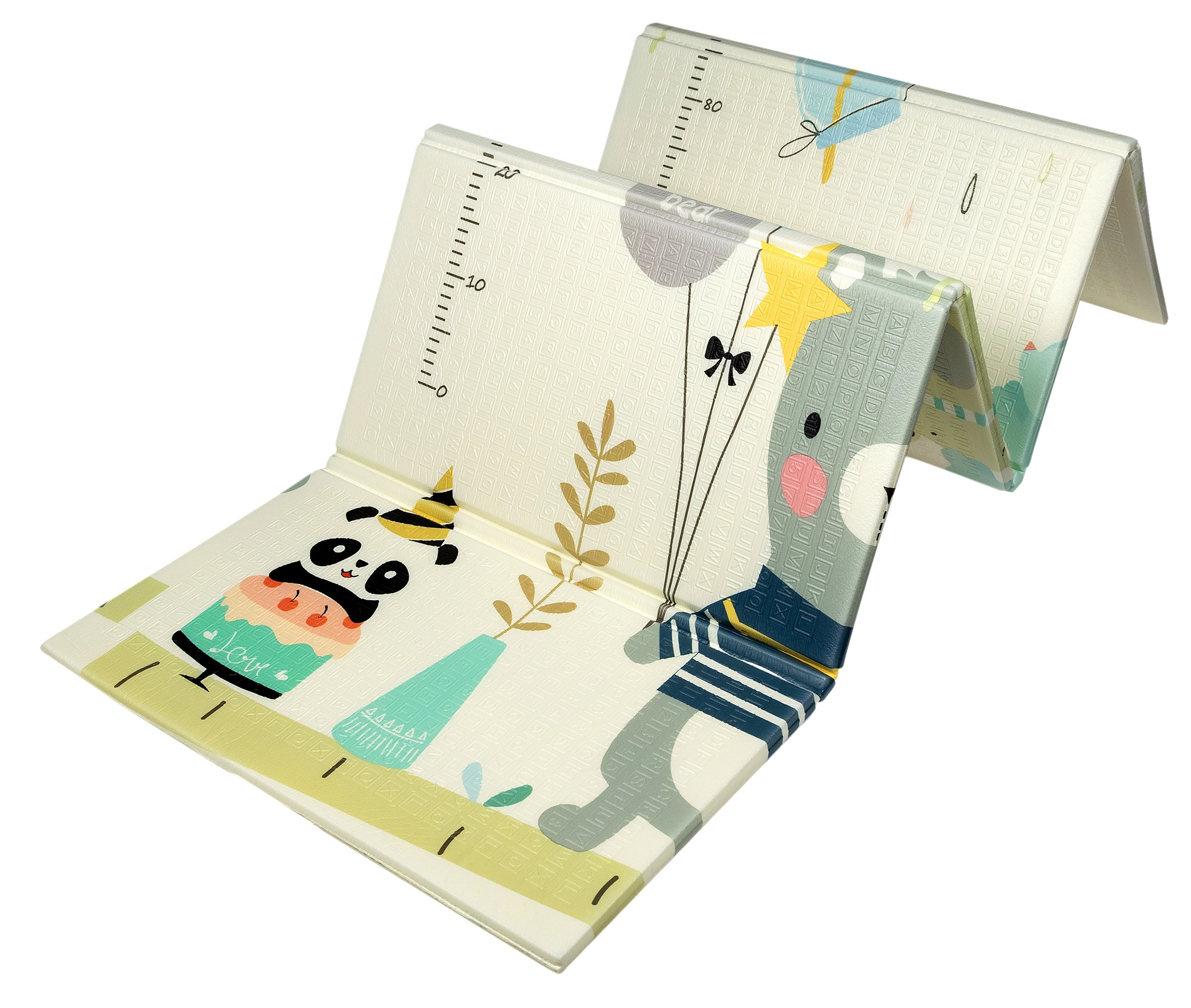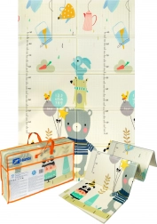 Odkrijte vsestransko podlogo, ki raste z vašim otrokom od prvih dni življenja. Zahvaljujoč debeline 1 cm odlično izolira pred mrazom in blaži udarce, zato je idealna za varno igranje, plazenje in prve korake. Dvostranski dizajn ponuja na eni strani prikupne pande, na drugi pa živalice s številkami in merilom rasti, kar podpira zgodnji razvoj in učenje.
