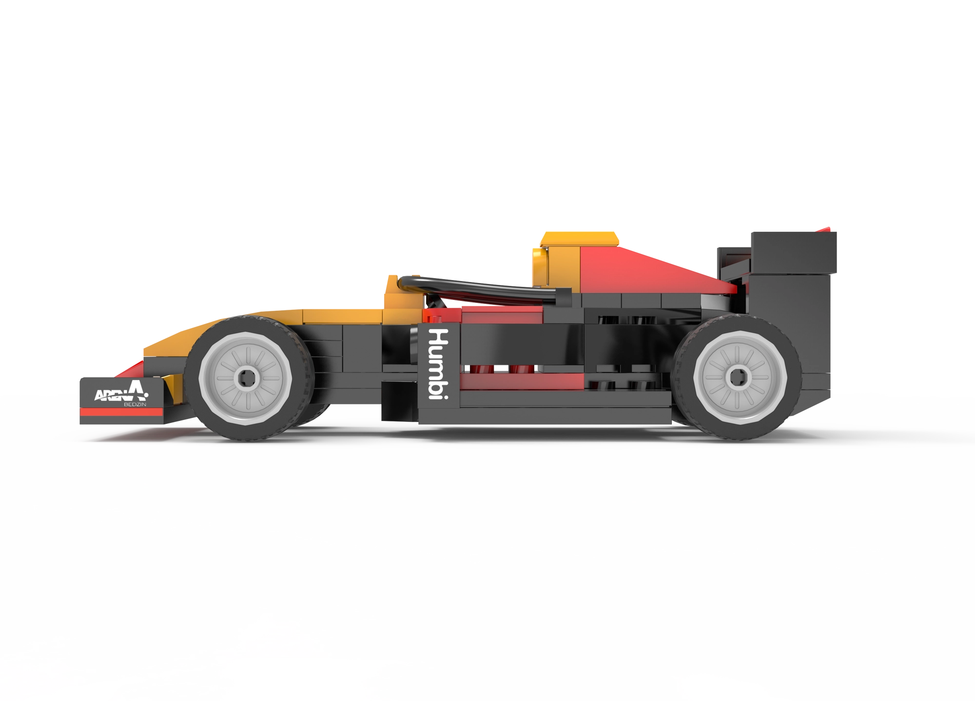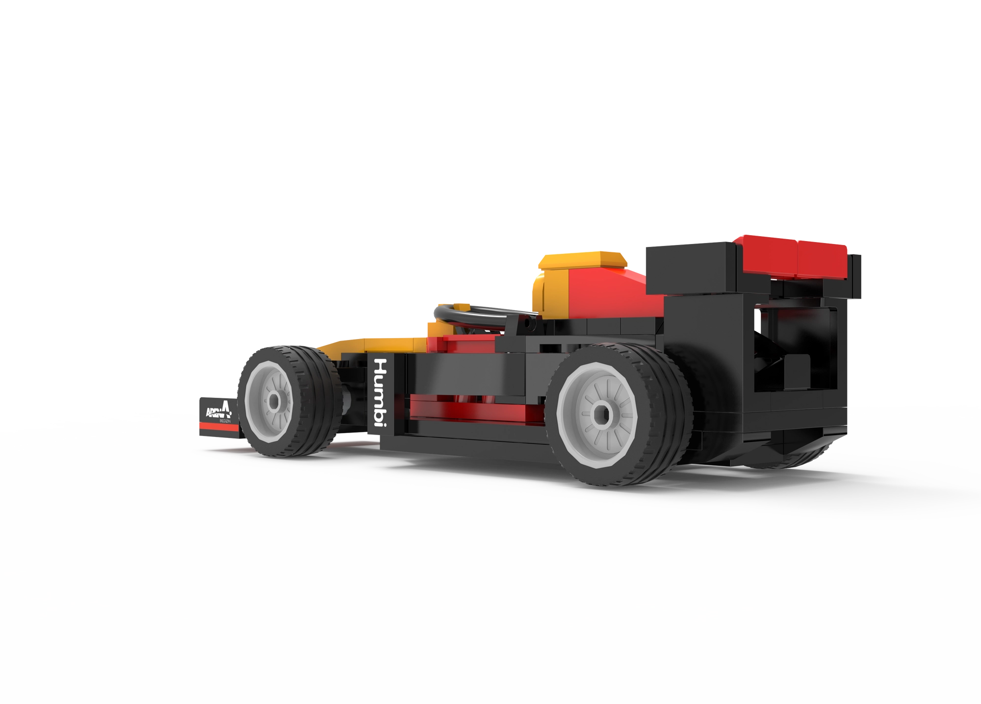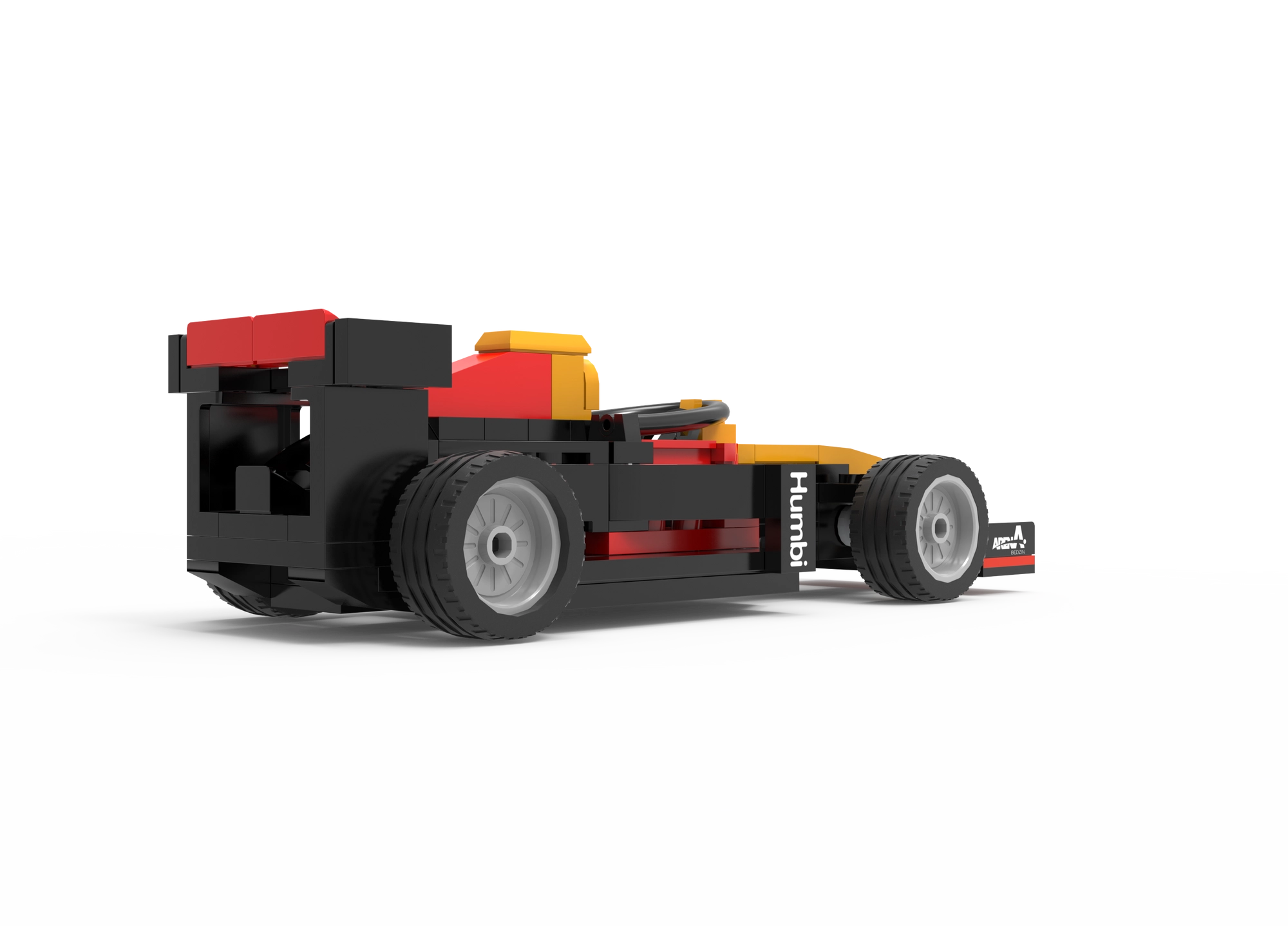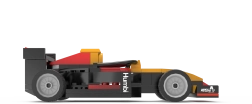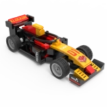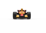 Nizek kokpit, sprednje krilo in zadnji spojler dajejo modelu avtentičen videz. Štiri kolesa se prosto vrtijo za gladko gibanje po ravnih površinah.