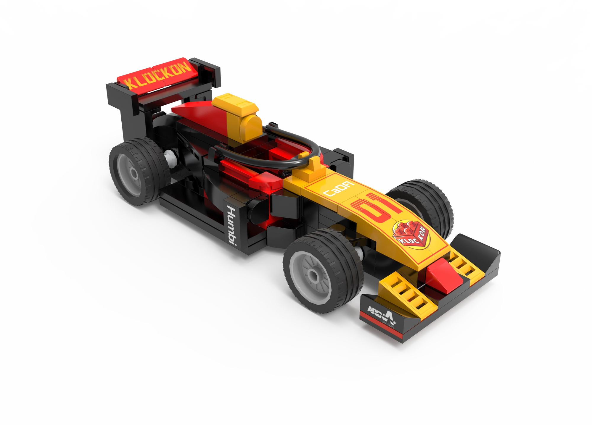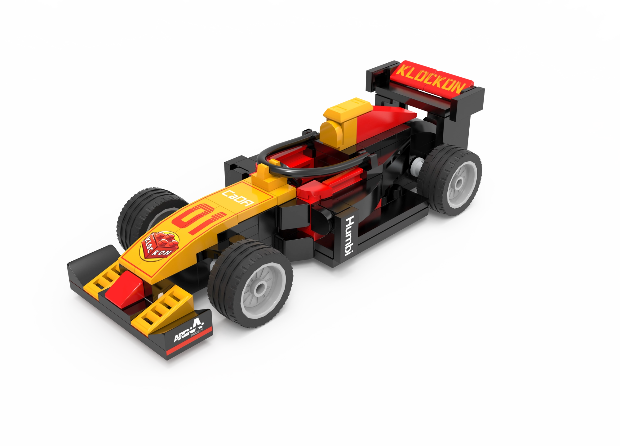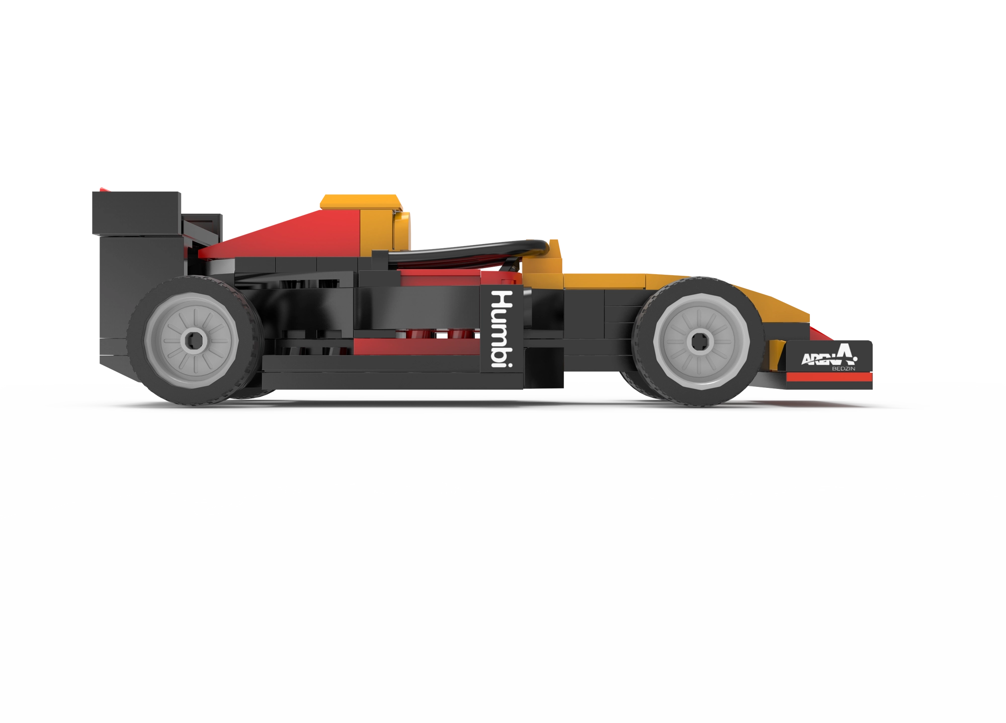 Nizek kokpit, sprednje krilo in zadnji spojler dajejo modelu avtentičen videz. Štiri kolesa se prosto vrtijo za gladko gibanje po ravnih površinah.