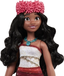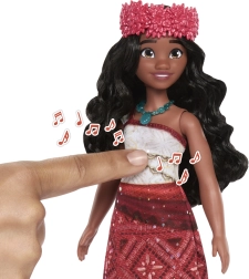 Punčka Moana otrokom prinaša vzdušje polinezijskih pustolovščin. Ima dolge, valovite lase za česanje, podroben outfit s potiskom in modne dodatke. Zaradi artikulacije je punčko enostavno postavljati v položaje in oživljati najljubše prizore iz filma.