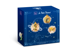 Figurica Malega princa, vrtnica pod steklenim zvonom in zvezdni detajli ustvarjajo harmonično dekoracijo, navdihnjeno z brezčasno zgodbo.