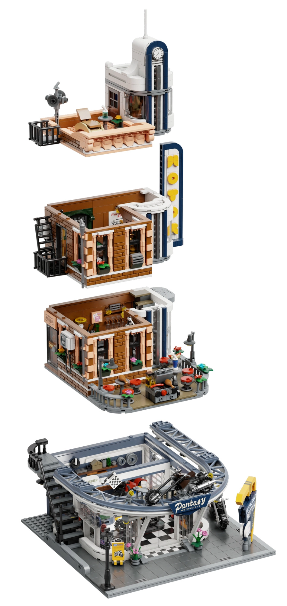 Hiša izstopa po precizni izdelavi, avtentičnih dodatkih in množici prizorov, ki spodbujajo domišljijo. Odlična izbira za ljubitelje motorjev in zbiratelje mestnih gradbenih setov.