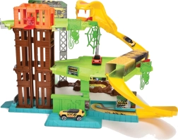 Barvit videz z realističnimi elementi, kot so liane, drevesa in tematski okraski, otroke posrka v zgodbo. Priloženi kovinski avtomobilček je pripravljen za igro takoj po razpakiranju in spodbuja razvoj koordinacije ter domišljije.