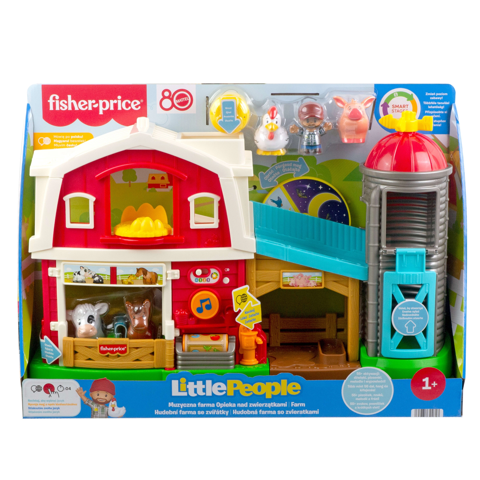 Interaktivna kmetija Little People spremeni igro v zabavno učenje. Otroci lahko odpirajo in zapirajo vrata, preklapljajo dan/noč, spuščajo balo sena iz silosa in pospravljajo živali v njihove bokse. Veliki upravljalni elementi, gumb z noto in drsnik načinov so idealni za majhne otroške roke.