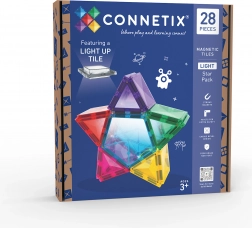 Set CONNETIX Light Star Pack prinaša otrokom neskončne možnosti gradnje – od zvezd in mozaikov do 3D stolpov, mostov in palač. Zahvaljujoč močnim magnetom konstrukcije trdno stojijo, prosojne barve pa čudovito žarijo, še posebej v kombinaciji s svetlečo ploščico, ki zgradbam doda edinstven učinek.