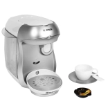 Otroški kavni aparat v elegantni sivi barvi ponuja pravi pretok vode brez segrevanja – dovolj je napolniti rezervoar z merilnikom in pritisniti gumb. Ne manjka odpirljiv pokrov za kapsulo, odstranljiva podloga za skodelico ter bela skodelica s krožničkom za avtentični kavni ritual.