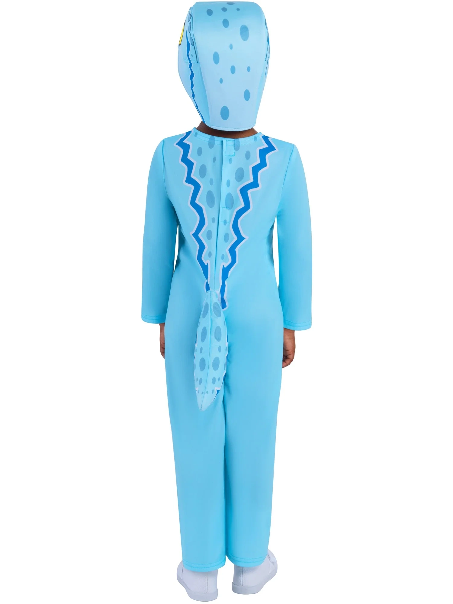 Kostum izstopa s potiskom madežev, dekorativno nazobčano hrbtno linijo in udobnim krojem, ki ne omejuje gibanja. Odlična izbira za otroške zabave, pustovanja, maškare in vsakodnevne pustolovščine.
