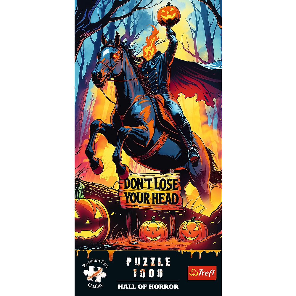 Uživajte v kakovostnem sestavljanju s puzzli TRELF z motivom Hall of Horror – Jezdec brez glave. Pakiranje vsebuje 1000 koščkov iz čvrstega, debelega kartona z natančnimi izrezi za gladko spajanje. Izdelek ima certifikat FSC, plastični deli embalaže pa so kompostabilni in biološko razgradljivi.