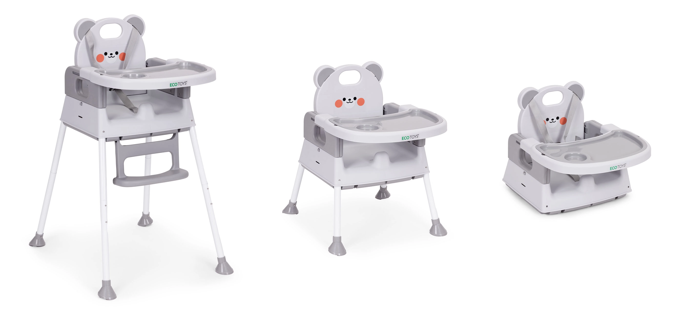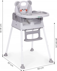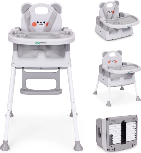 Ta večnamenski stolček za hranjenje 3 v 1 omogoča otrokom, da jedo skupaj z družino, hkrati pa prihrani prostor. Zaradi enostavne preureditve ga lahko uporabite kot visok stol, nizko sedišče ali nastavek na jedilni stol – idealno za kuhinjo, majhne prostore in na poti.