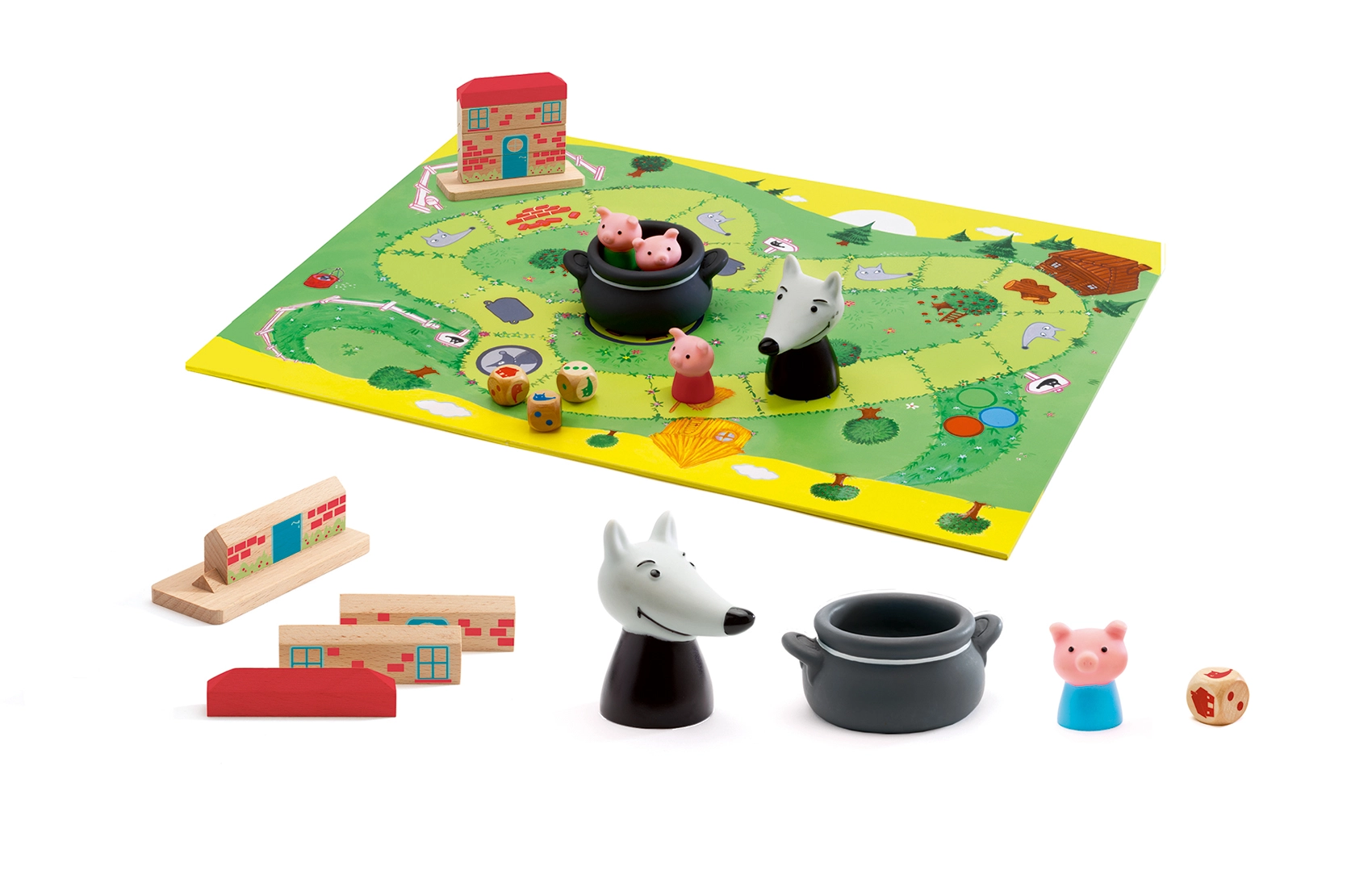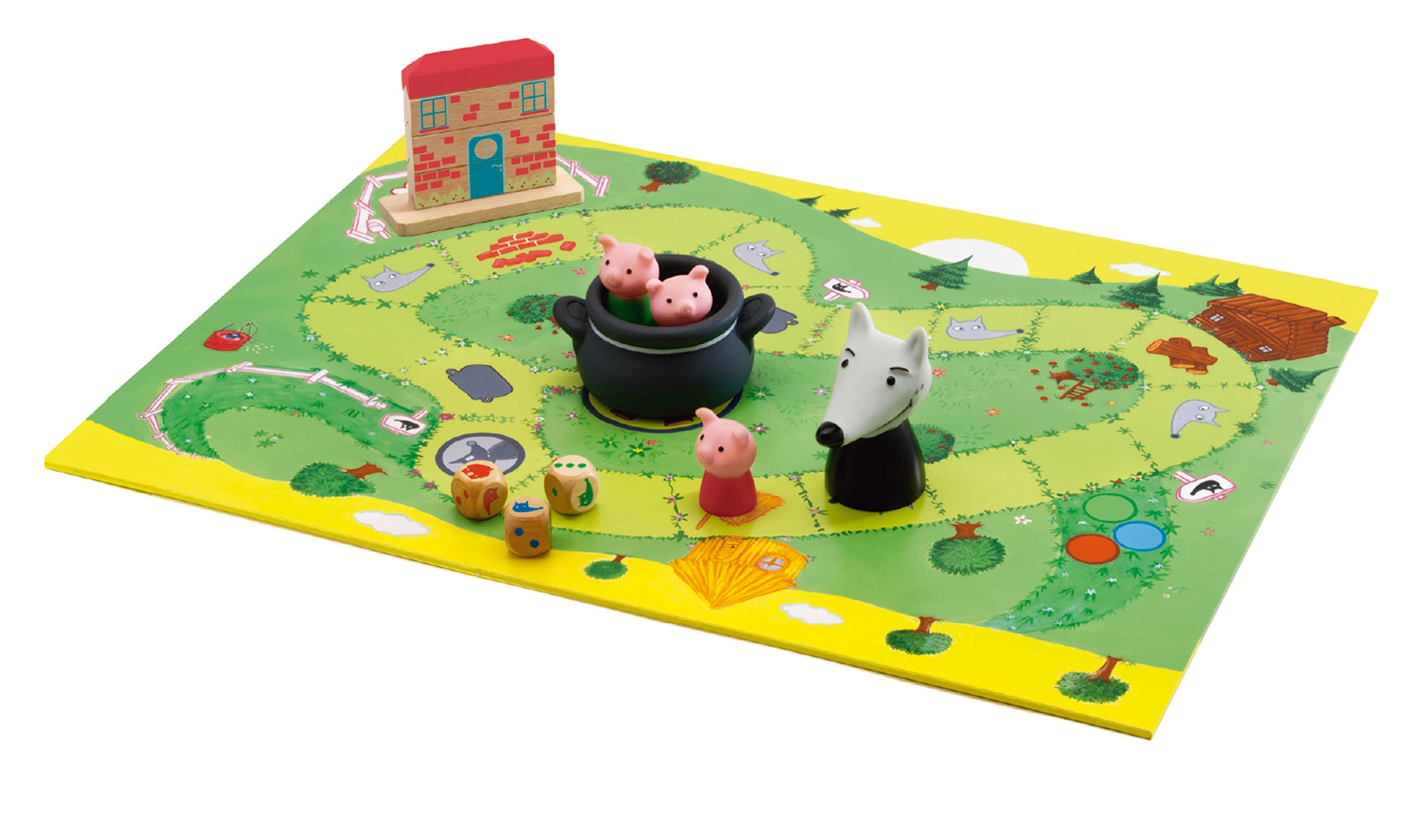 Zabavna kooperativna igra za otroke, v kateri skupaj rešujete tri pujske pred zlobnim volkom. Razvija timsko sodelovanje, načrtovanje in odzivnost. Preprosta pravila, napeta zgodba in čudovita izvedba DJECO zagotavljajo odlično družinsko zabavo.