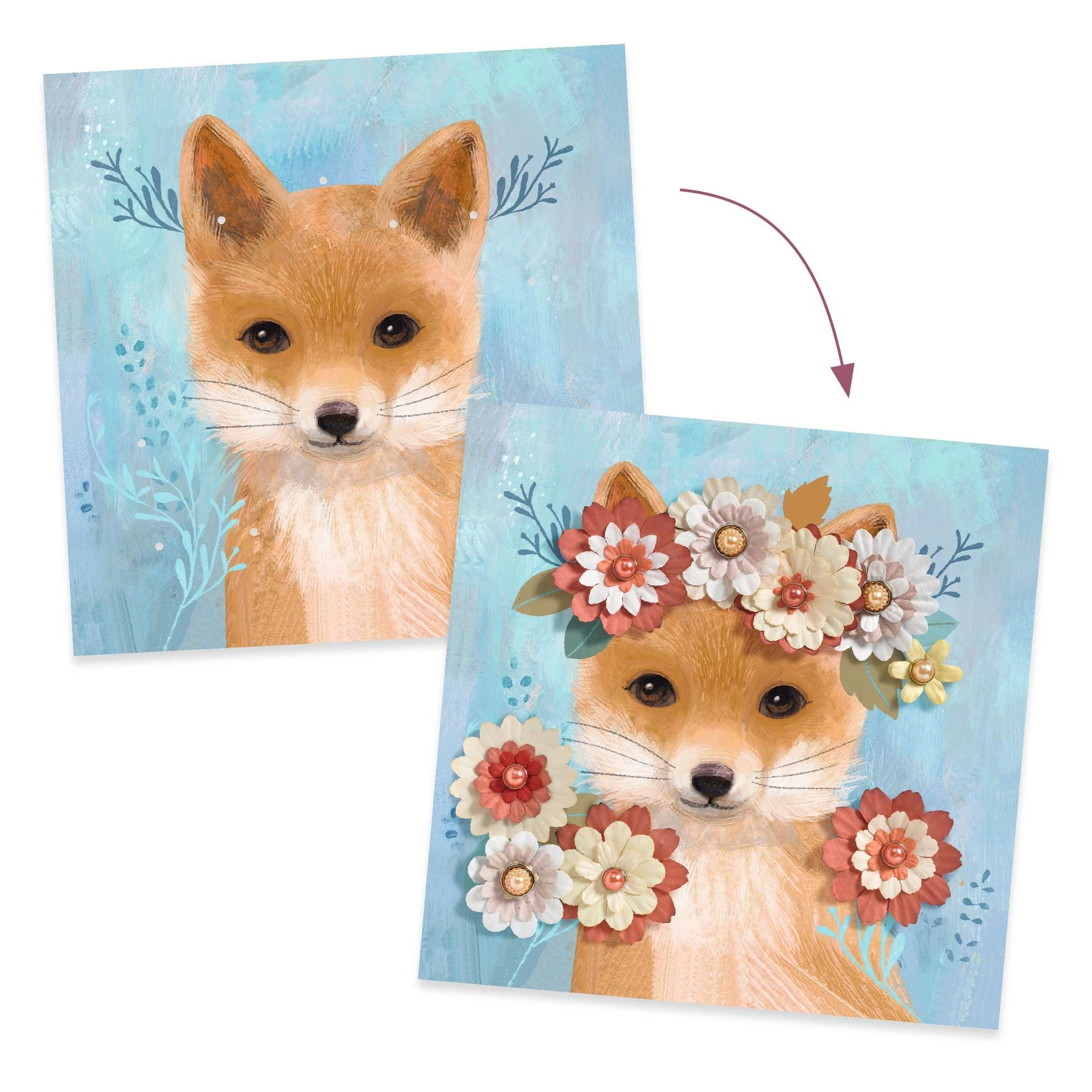 Odkrijte ustvarjalni komplet za otroke DJECO, s katerim nastanejo štiri čarobne slike živalic, okrašene s cvetličnimi venci. S papirnatimi listki in bisernimi povezovalnimi elementi otroci razvijajo fino motoriko, ustvarjalnost ter občutek za barve in kompozicijo. Odlično kot darilo in za skupno ustvarjanje s starši.