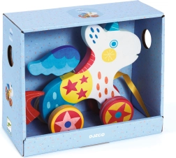 Ta vesel vlečni samorog znamke DJECO je idealen spremljevalec za vsakodnevno raziskovanje. Otroci bodo uživali v gibanju, ko igračo vlečejo za vrvico, medtem ko izrazite barve in prijazen videz spodbujajo njihovo domišljijo.