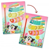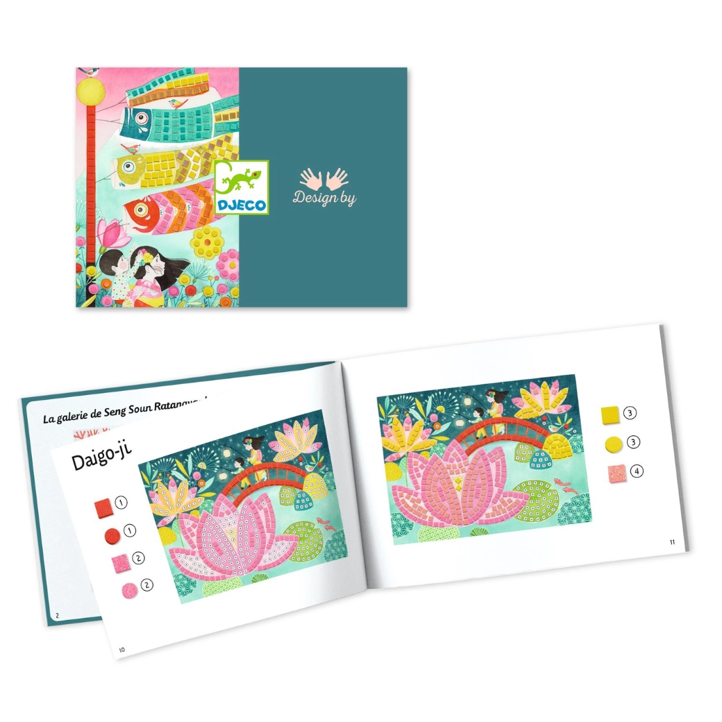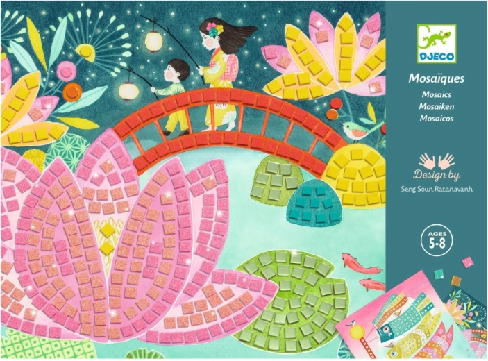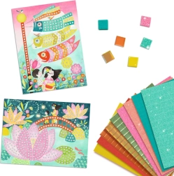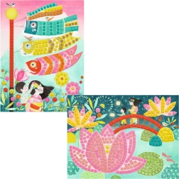 Ta zabavni mozaikov komplet je navdihnjen z japonskimi motivi – od barvitih vetrnic s krapi do umirjenih prizorov z lotosi. Otroci preprosto prilegajo samolepilne koščke po številkah in oblikah ter tako ustvarjajo impresivne, bleščeče podobe. Končni izdelki so odlični kot dekoracija otroške sobe.