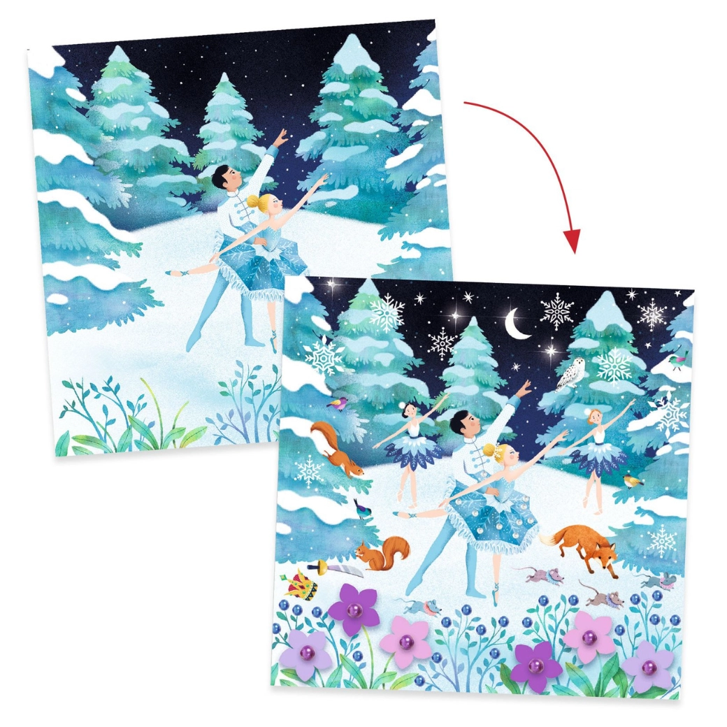 Ustvarjalni set Hrestač od DJECO je idealen za otroke, ki imajo radi ustvarjanje in pravljice. Zahvaljujoč premišljeni vsebini in lepim ilustracijam nastanejo očarljivi motivi, ki prikličejo čarobno vzdušje baleta. Set je odličen za skupno ustvarjanje s starši ali za samostojno dejavnost.