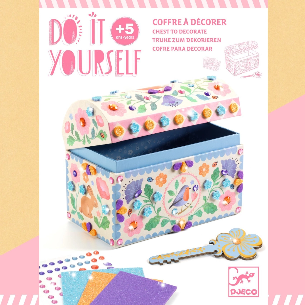 Ustvarite svojo skrinjico s tajnim dnom in svoje dragocenosti skrijte s stilom! Ta kreativni set znamke Djeco podpira fino motoriko, kreativnost in domišljijo otrok. Preprost postopek, kakovostni materiali in čudovit rezultat, na katerega bodo otroci ponosni.