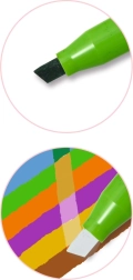 Z enim flomastrom narišete nežne črte in široke poteze – le spremenite kot. Odlično za poudarjanje, tie-dye učinke in barvne prelive.