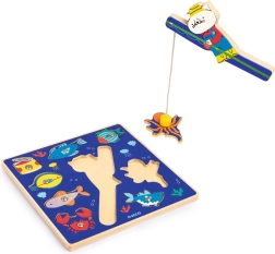 Vstavljanka Ribolov znamke Djeco je idealna prva sestavljanka za najmlajše. Veliki, trdni deli z gladko površino se dobro držijo in jih je enostavno vstavljati v pripravljene oblike. Vizualno privlačne ilustracije ribic in podvodnega sveta spodbujajo k ponavljajoči se igri.