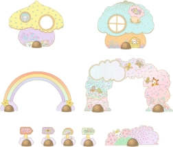 Komplet vsebuje samostoječe izreze hišk, mavric in oznak, ki razširijo končno sceno in spodbudijo domišljijo pri odprti igri.