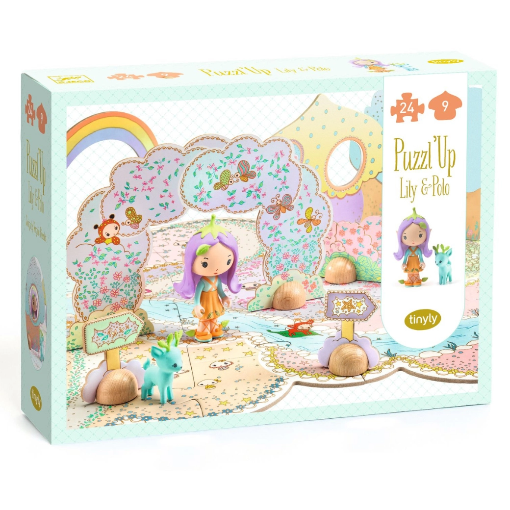 Puzzl’Up Tinyly znamke DJECO združuje veselje ob sestavljanju z domišljijo odprte igre. Iz posameznih kartonskih koščkov sestavite slikovito sceno z mostovi, rečico, zvezdami in živalmi. Zahvaljujoč samostoječim kartonskim dekoracijam in ljubkim figuricam se končna scena spremeni v igralni svet, ki ga bodo otroci znova in znova oživljali z lastnimi zgodbami.