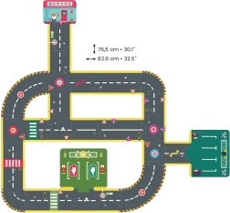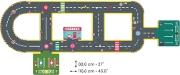 Set vsebuje različne oblike koščkov za ustvarjanje ravnih odsekov, ovinkov, križišč in krožišča. Barvni simboli, prehodi za pešce in semaforji naredijo igro bolj realistično in zabavno. Zaradi trdne izdelave prenese tudi intenzivno vsakodnevno igro.