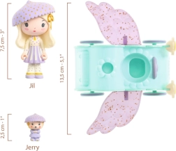 Tinyly Jil in Jerry prihajata v očarljivi pastelni kombinaciji z gobastimi klobučki in spremljevalnim oblačkastim vozilcem. Otroci si lahko izmišljujejo zgodbe o potovanjih, letenju in pravljičnih dogodivščinah – figurice so idealne za prosto igro in zbiranje.