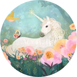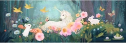 - Čaroben motiv: pravljični gozd in samorogi v bogatih barvah.