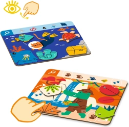 Vključene so kakovostno ilustrirane aktivnosti z jasnimi simboli, ki otrokom olajšajo orientacijo. Deli so robustni in prijetni na dotik, da jih male roke zlahka primejo. Igra je odlična za samostojno igro ali kot družinska aktivnost, ki naravno razvija kognitivne spretnosti.