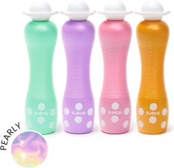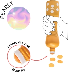 Penasti flomastri DJECO s perlskim leskom so zasnovani za male umetnike. Zahvaljujoč široki penasti konici se barva nanaša enakomerno, ne kaplja in se zlahka spere s kože ter večine tkanin. Nežen perlni učinek doda vsaki risbi čaroben lesk.