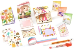 Zvezčiči, nalepke, washi trakovi in peresa za ustvarjanje pisem, voščil in dnevniških zapisov v enotnem slogu.