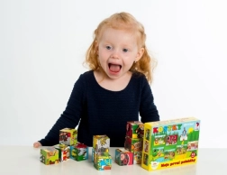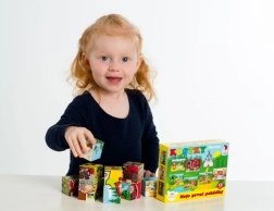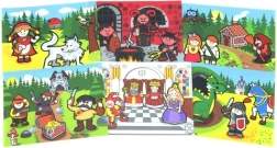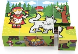 Dvanajst kock otrokom omogoča sestaviti šest različnih prizorov – na primer Rdečo kapico ali Janka in Metko. Zabava, ki se ne naveliča kar tako.