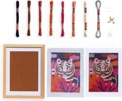Odkrijte veselje ustvarjanja s popolnim vezeninskim kompletom Atelier 64 blagovne znamke DJECO. Komplet ponuja vse, kar potrebujete za izdelavo dekorativnega gobelina z motivom tigra – od kakovostnega platna do pisanih prediv in okvirja za razstavljanje. Idealen za začetnike in napredne, ki želijo združiti sprostitev s kreativnostjo in imeti doma lastno izvirno delo. Zahvaljujoč jasnemu vzorcu in bogati barvni paleti je vezenje intuitivno in zabavno. Ustvarite dizajnersko sliko z motivom tigra, trenirajte fino motoriko in potrpežljivost ter uživajte v popolni ustvarjalni izkušnji v eni škatli.