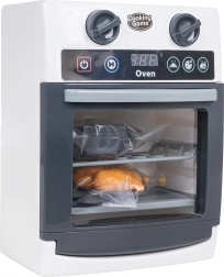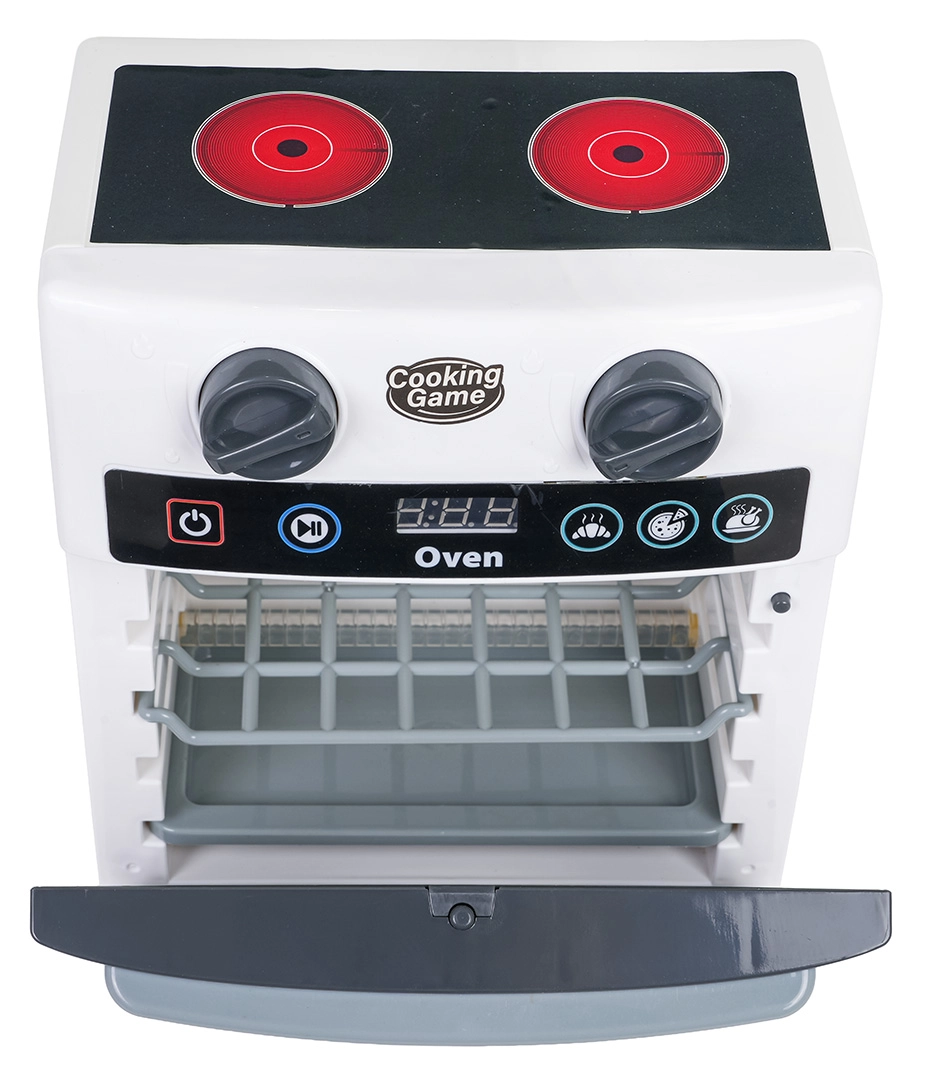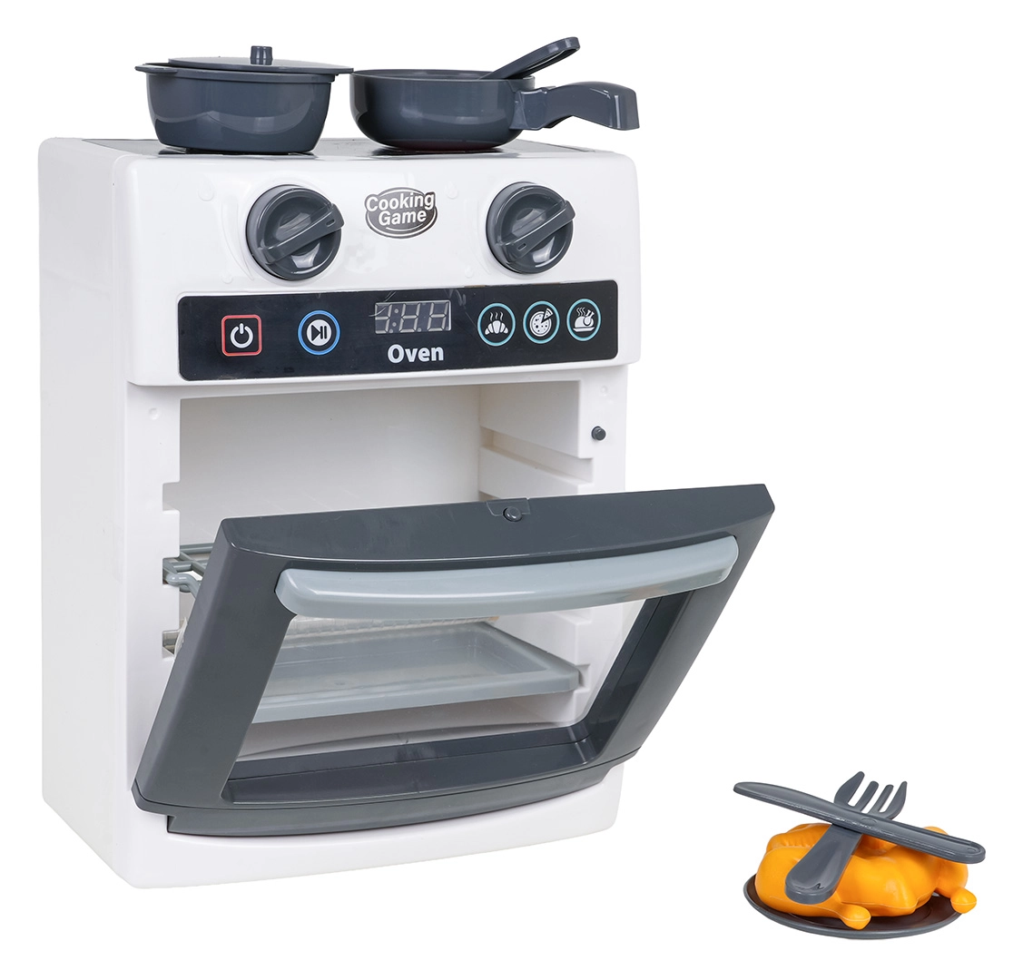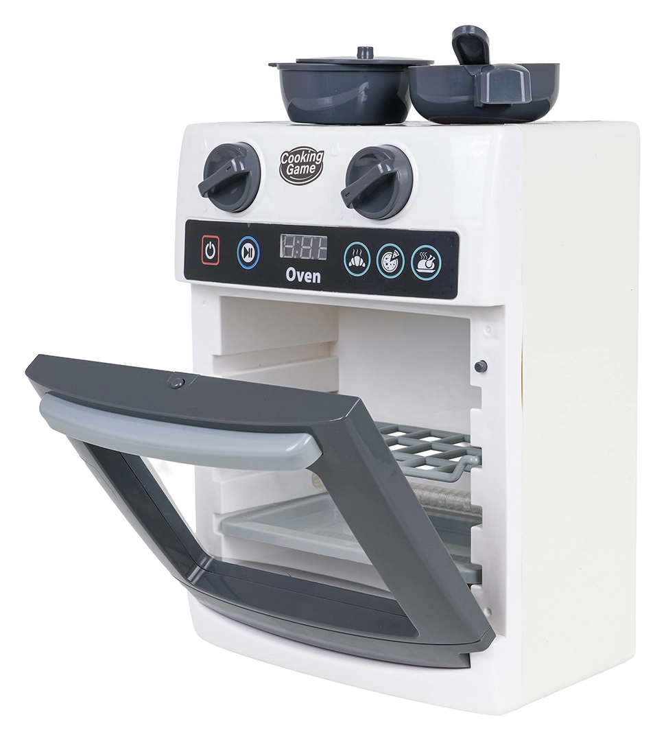 Ta otroška pečica zvesto posnema pravi aparat – ima prozorna vratca, premične upravljalne koleščke in panel s časovnikom. Med pečenjem se notranjost osvetli, slišijo se realistni zvoki odpiranja/zapiranja vratc, peke in zaključka programa. Igra kuhanja tako dobi nov razsežnost ustvarjalnosti in domišljije.