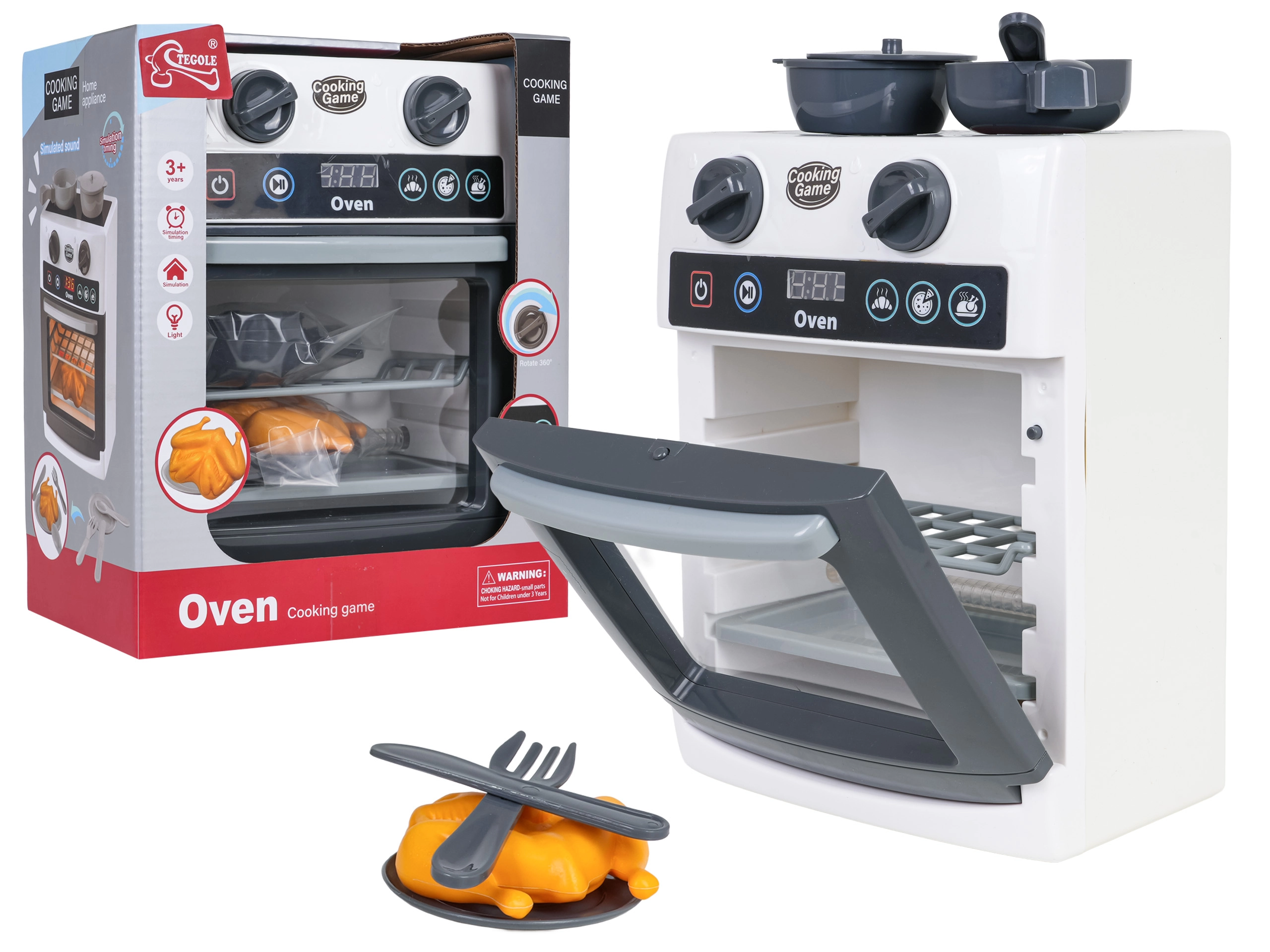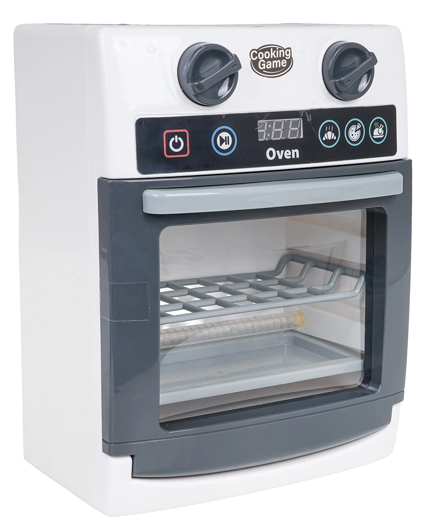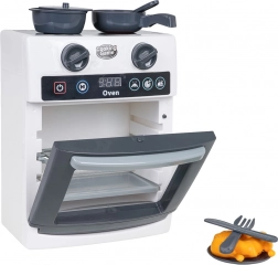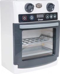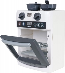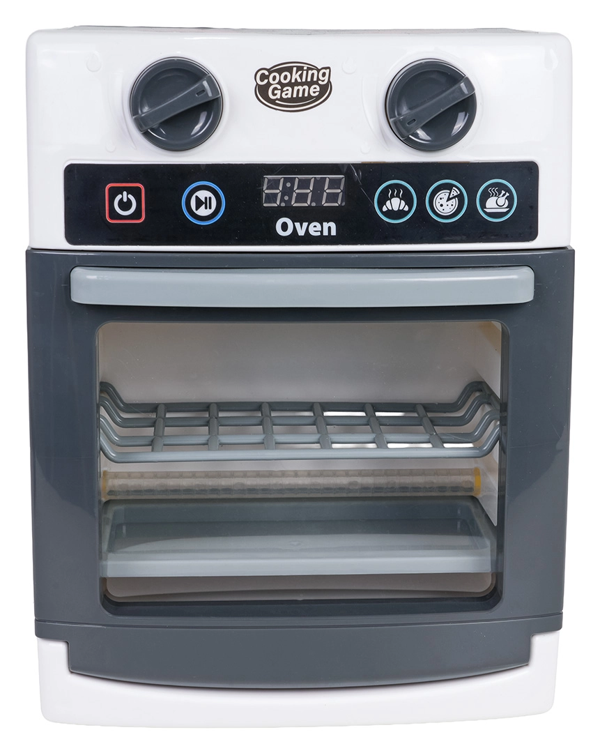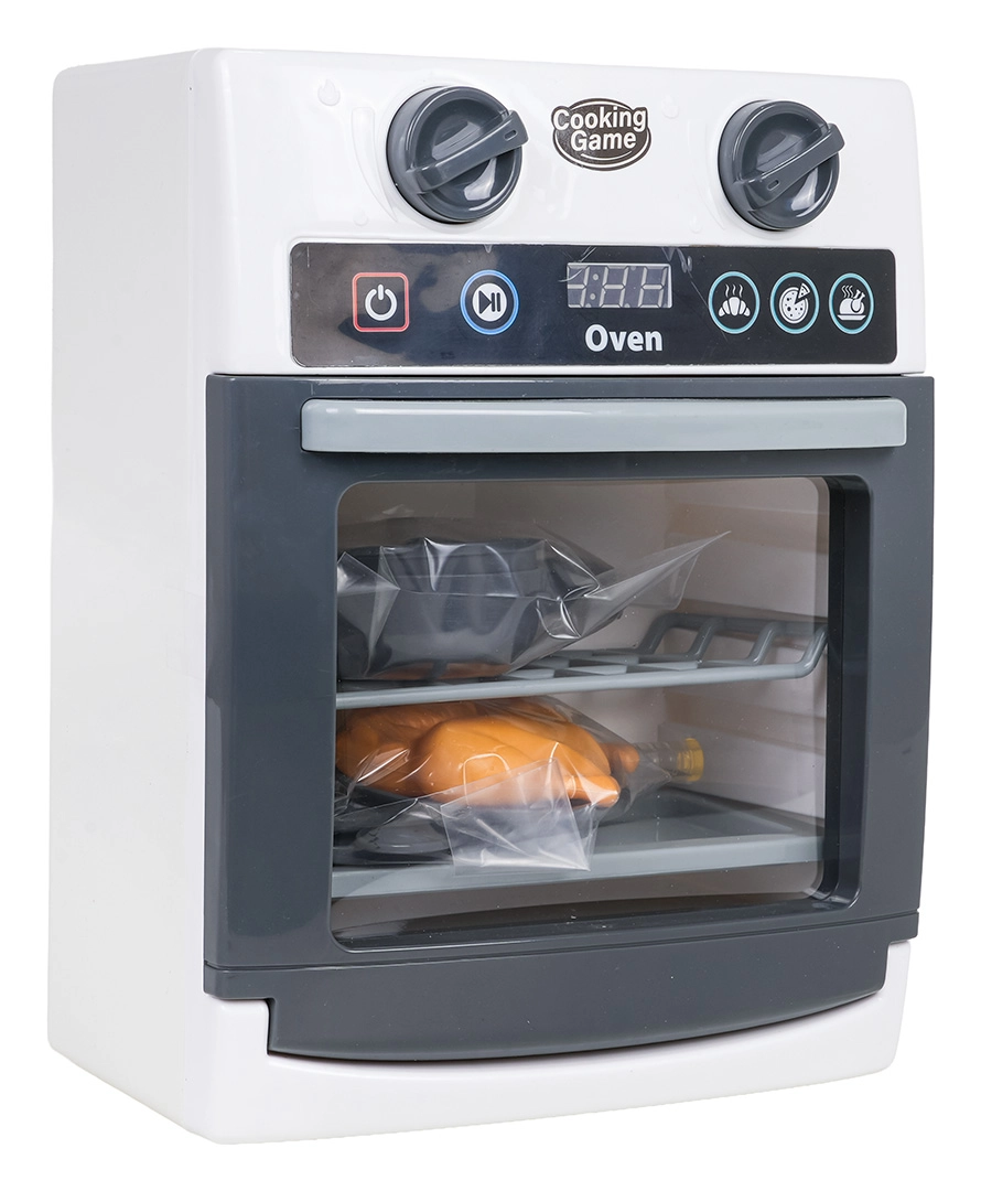 Ta otroška pečica zvesto posnema pravi aparat – ima prozorna vratca, premične upravljalne koleščke in panel s časovnikom. Med pečenjem se notranjost osvetli, slišijo se realistni zvoki odpiranja/zapiranja vratc, peke in zaključka programa. Igra kuhanja tako dobi nov razsežnost ustvarjalnosti in domišljije.