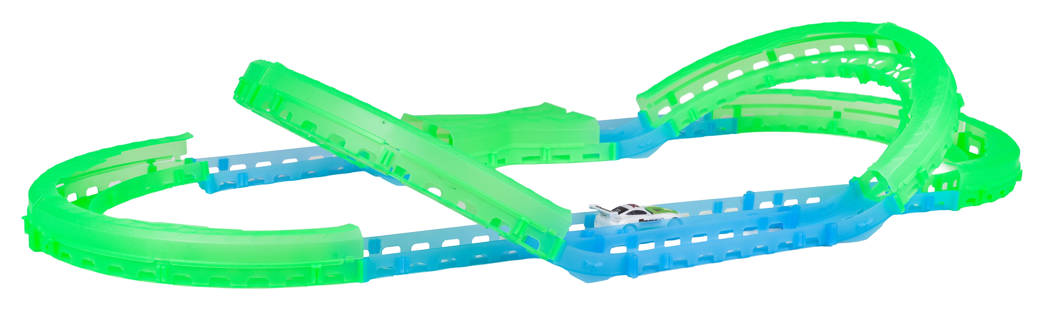 Fluorescenčni deli steze in LED osvetlitev avtomobilčka vsako vožnjo spremenijo v svetlobni šov, ki se ga otroci ne naveličajo.