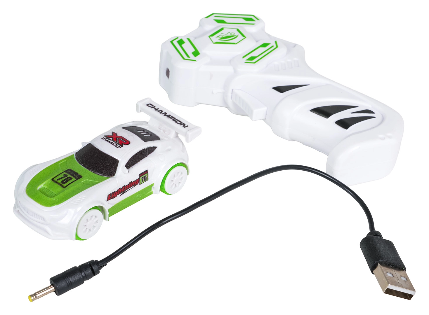 Pistolni upravljalnik zagotavlja udobno vodenje, avtomobilček se polni prek USB. Upravljalnik: 2× AAA (nista priloženi). Avtomobilček: akumulator 3,7 V.