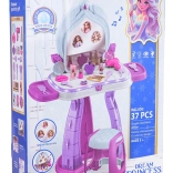Set vključuje stolček in številne dodatke, kot so sušilnik za lase, glavnik, krtača, sponke ter »kozmetika« za varno igro. Mizica je izdelana iz kakovostnih, za otroke varnih materialov v privlačnih barvah, ki spodbujajo samostojno in ustvarjalno igro.