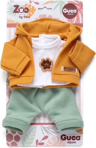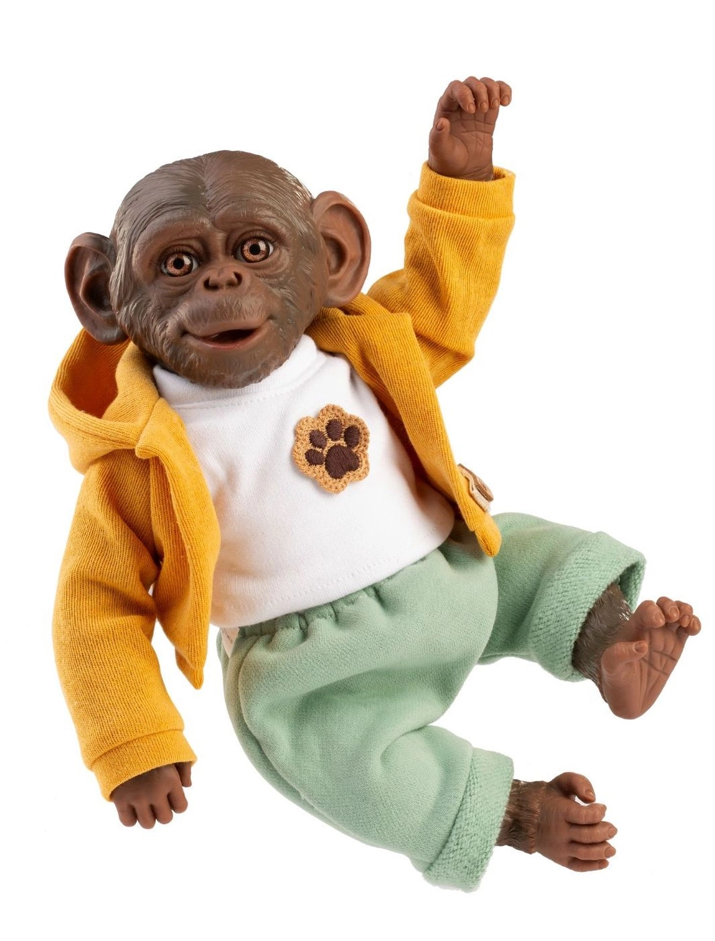 Stajliš 3-delni komplet oblačil za opičko dojenčka Reborn velikosti 32 cm prinaša popoln outfit za vsakodnevno igro. Vsebuje kapucar, majico s potiskom tačke in hlače z manšetami. Oblačila so ročno izdelana v Španiji, enostavna za oblačenje in podpirajo kreativno igro ter razvoj fine motorike. Primerno od 3 let.