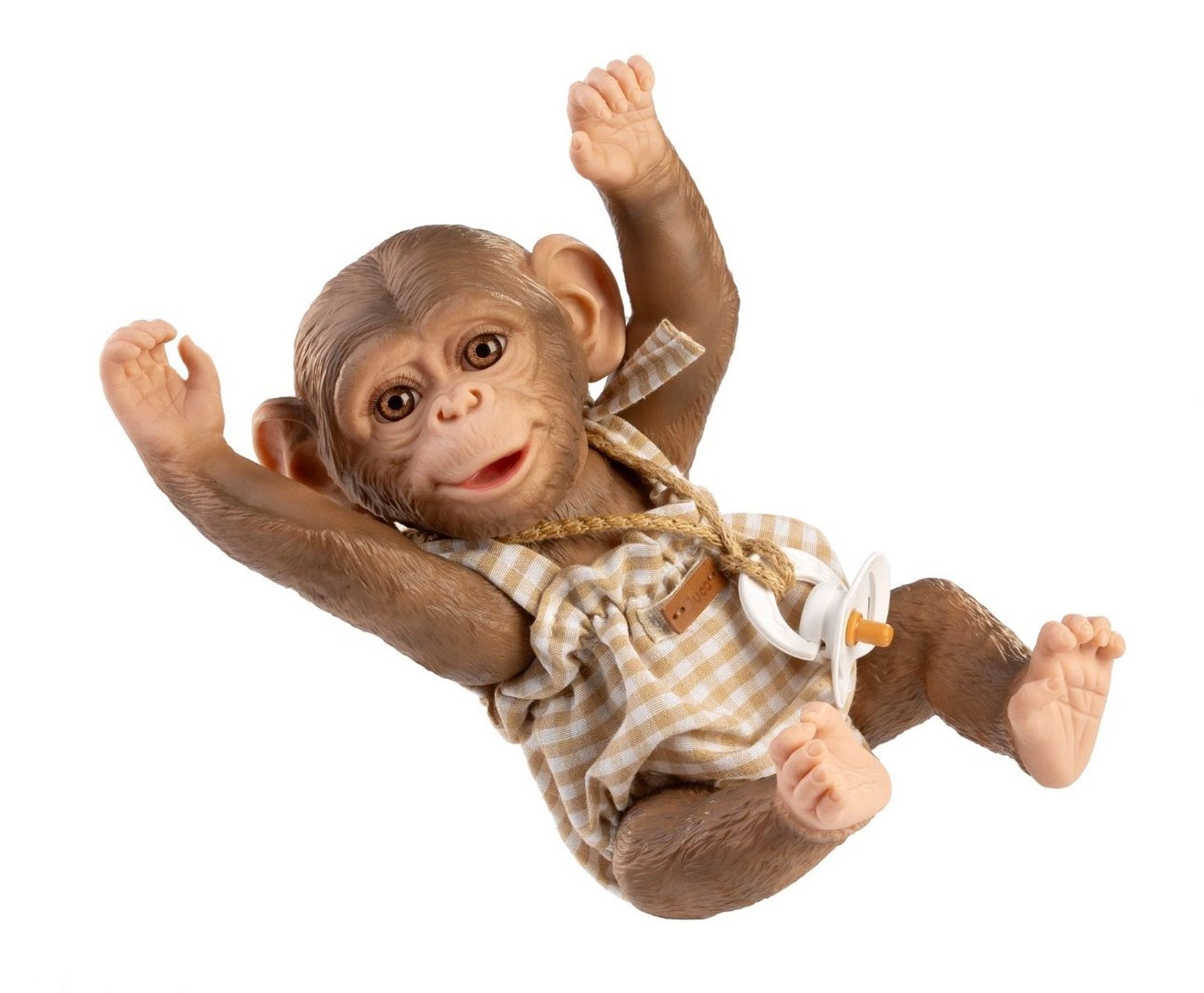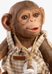 Privoščite svojemu opičjemu dojenčku REBORN nov videz s skrbno izdelanim kompletom. Nežna karirasta romper obleka z nastavljivimi naramnicami in elastičnimi robovi omogoča udobno oblačenje in prijetno nošenje. Priložen je tudi stajliš dudek na vrvici, ki dopolni prisrčen videz in spodbuja domišljijsko igro.