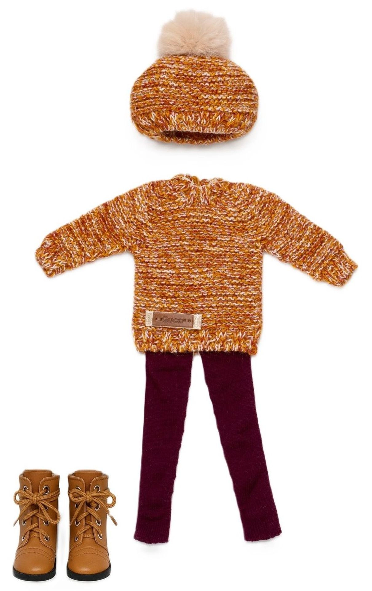 Privoščite svoji punčki Penelope popoln outfit za hladnejše dni. Ta 4-delni komplet združuje mehke pletene materiale z natančno izdelanimi vezalnimi čeveljčki, ki punčki dodajo realističen videz. Odkrijte kakovostno izdelavo in udobno oblačenje, zaradi katerega bo igra še zabavnejša.