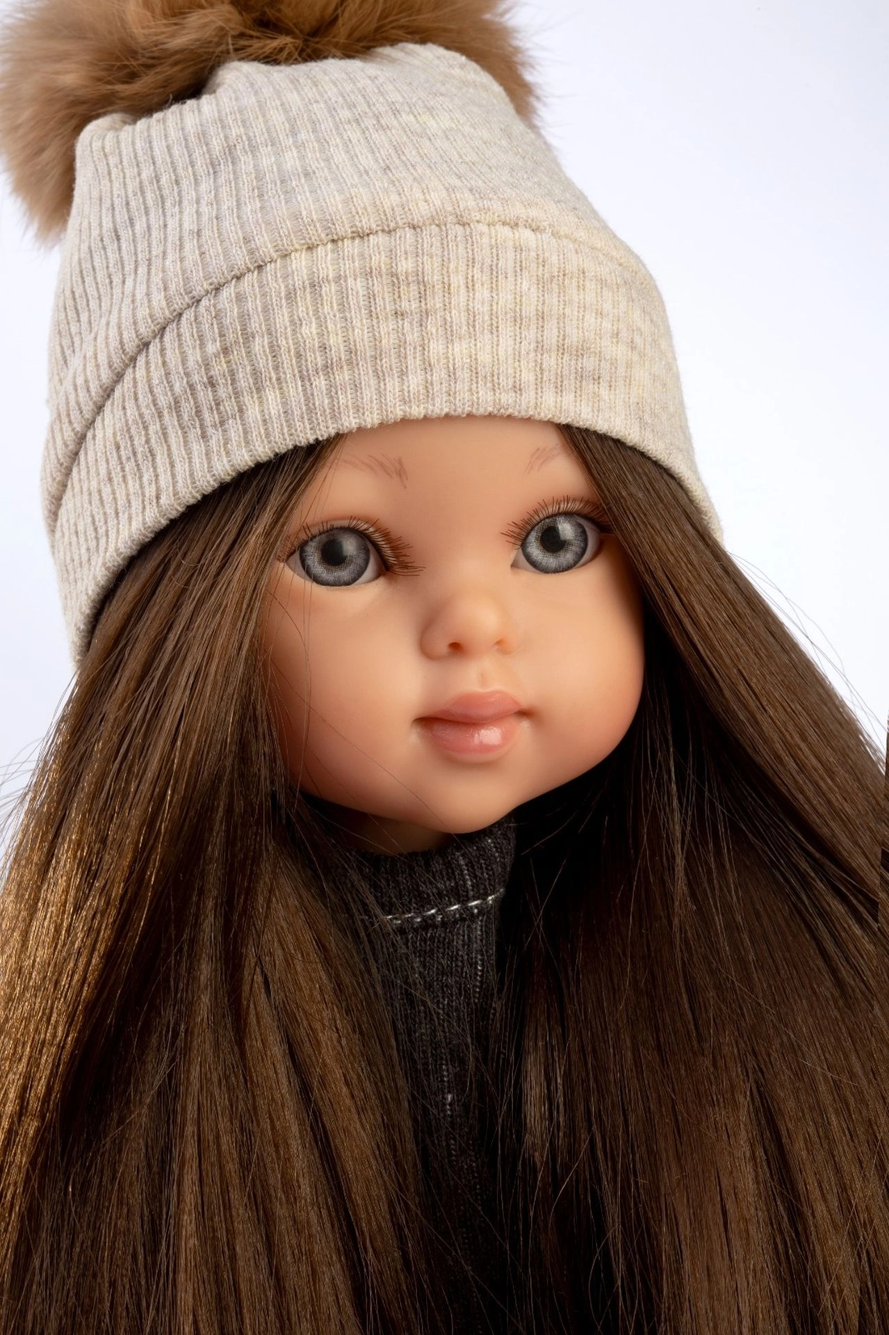 Obogatite garderobo svoje punčke Penelope s skrbno usklajenim 5-delnim kompletom, ki združuje moderen karirasti vzorec z grelnimi pleteninami. Komplet vključuje rumeno kapucar jaknico z mehko podlogo, pleteno kapo s cofom, črno majico, karirane hlače z gumbi kot detajli in pletene nogavičke/nogavčke. Vse je zasnovano tako, da se zlahka oblači in slači.