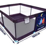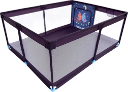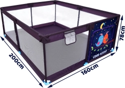 Ta velika otroška ograja nudi do približno 3,2 m² igralne površine za plazenje, igro in počitek. Konstrukcija iz odpornih cevi in spojk je lahka, a zelo stabilna, mehke stene in dno ščitijo pred udarci ter povečujejo udobje pri daljši uporabi. Mrežaste stranice omogočajo staršem stalen nadzor, otroku pa stik z okolico, kar krepi občutek varnosti.