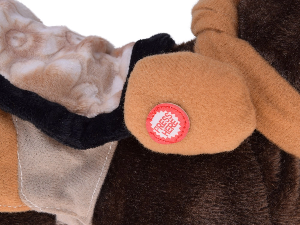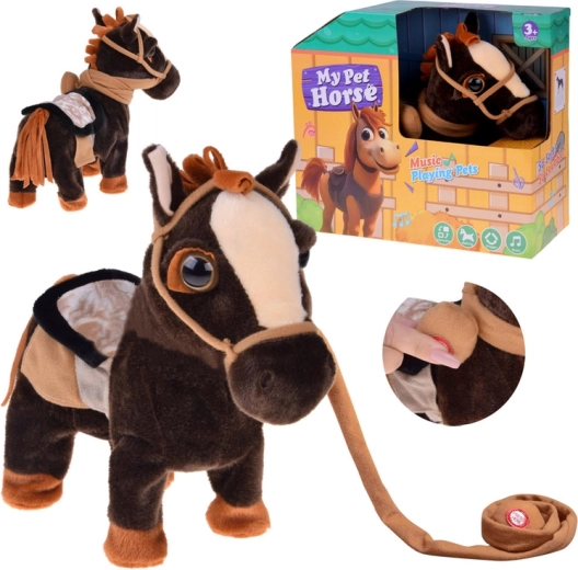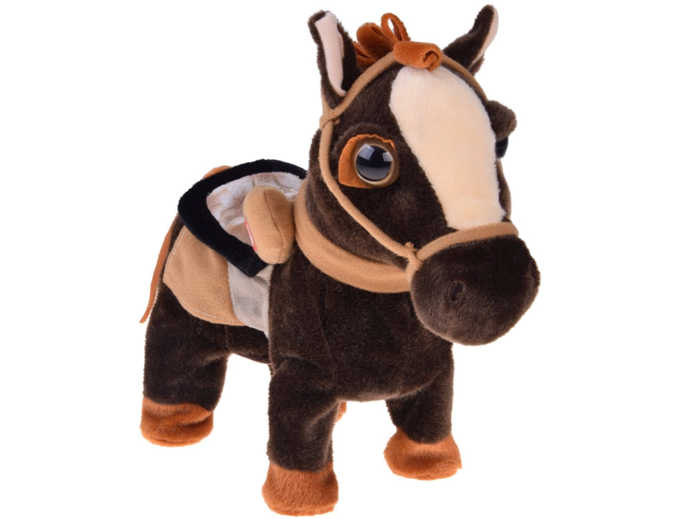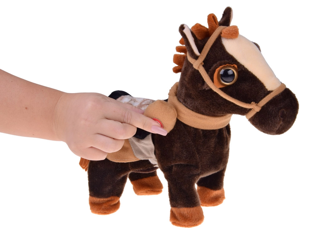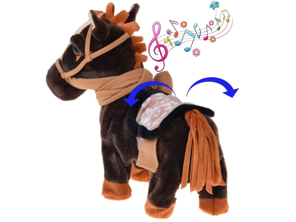 Odkrijte čar zahodnjaških doživetij z interaktivnim plišastim konjičkom, ki se po pritisku na gumb zažene, zarežgeta in izvede zabavno plesno koreografijo na veselo country melodijo. Otroci bodo vzljubili njegove velike vezene oči, mehko dlako in možnost vodenja s lonžo/povodcem.