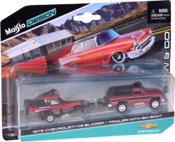 Ta licencirani komplet Maisto združuje klasični CHEVROLET K5 BLAZER 1979 v rdeče-črni izvedbi s prikolico in elegantnim motornim čolnom. Kovinska karoserija, natančni proporci ter avtentični detajli zunanjosti in notranjosti bodo navdušili vsakega ljubitelja ameriške klasike.