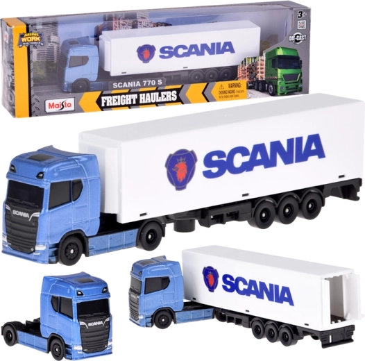 Realističen set Maisto v merilu 1:64 prinaša licenciran vlačilec SCANIA 770S s škatlastim polpriklopnikom za igro in zbiranje. Kovinska kabina (die-cast), odstranljiv polpriklopnik, kakovostna izdelava in podroben tisk SCANIA zagotavljajo odlično izkušnjo in dolgo življenjsko dobo.