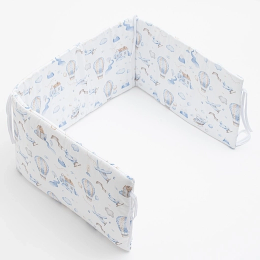 Praktični trakovi omogočajo hitro in zanesljivo pritrditev na posteljico. Barvno obstojen potisk z umirjenimi motivi se ne lušči in ne barva oblačil. Hipoalergeno polnilo preprečuje razmnoževanje mikroorganizmov in plesni, zato je obroba primerna tudi za občutljive otroke.