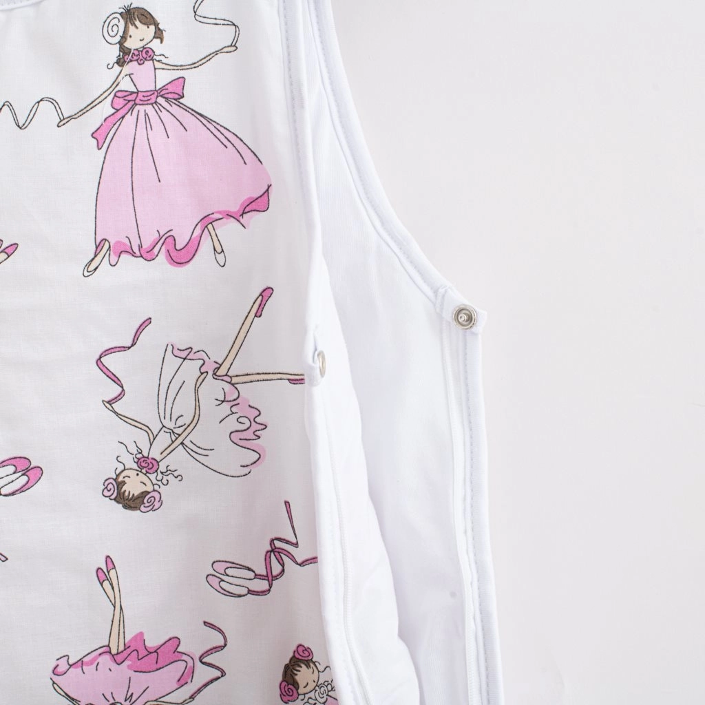 Spalna vreča z ljubkim motivom plešoče balerine je idealna za miren spanec vašega dojenčka. Kombinacija 100 % bombaža in mehkega poliestrskega polnila nudi optimalno udobje ter ohranja stabilno temperaturo med spanjem.