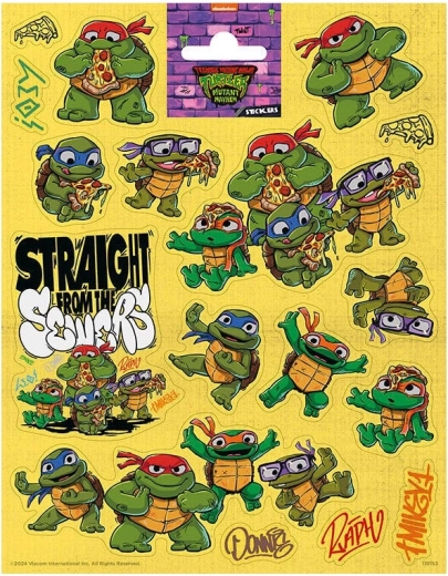 Odkrijte zabavne nalepke Ninja želve v večjem formatu z merami 15,6 × 20 cm. Idealne za okrasitev zvezkov, dnevnikov ali daril. Primerne za otroke od 3 let.
